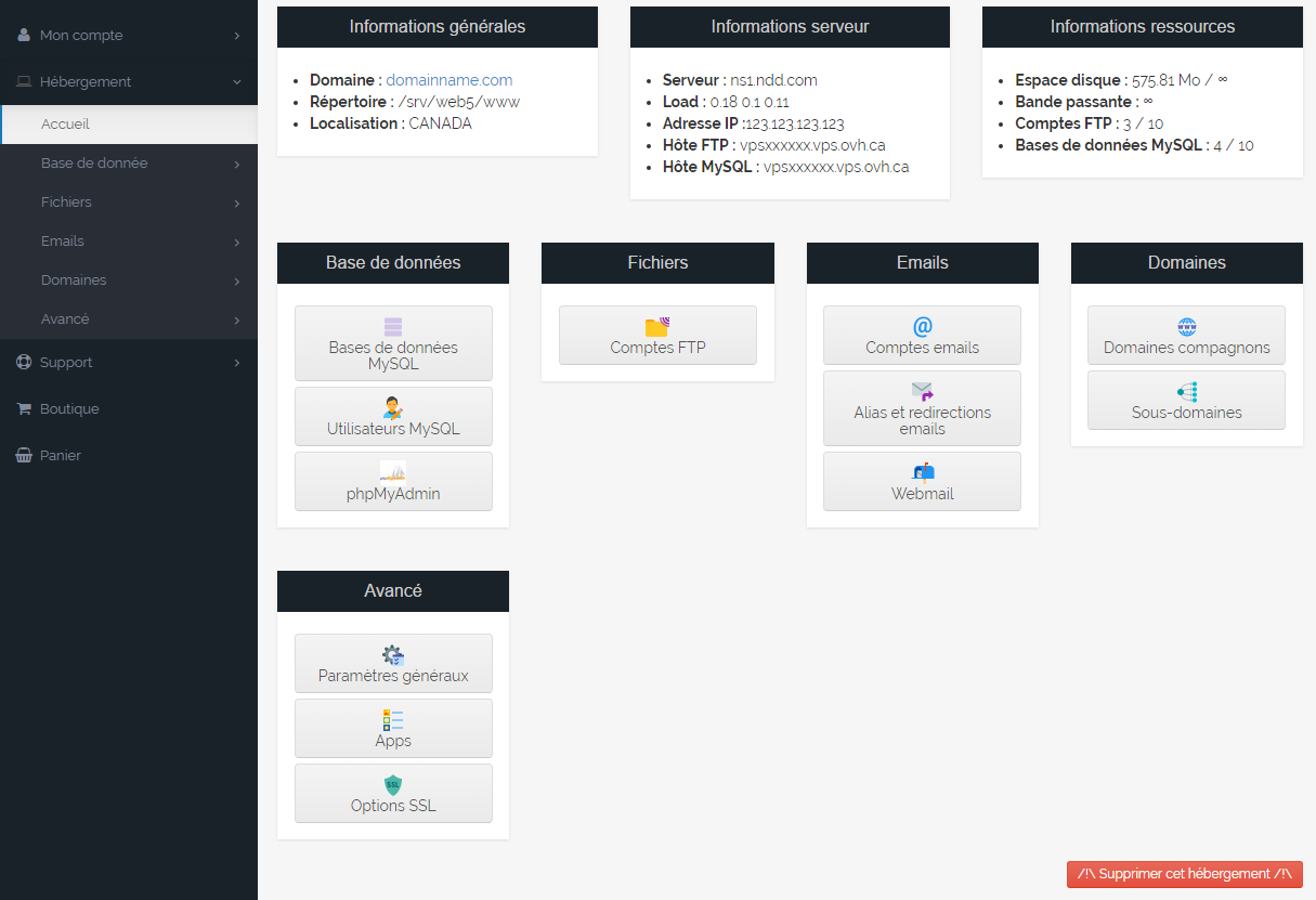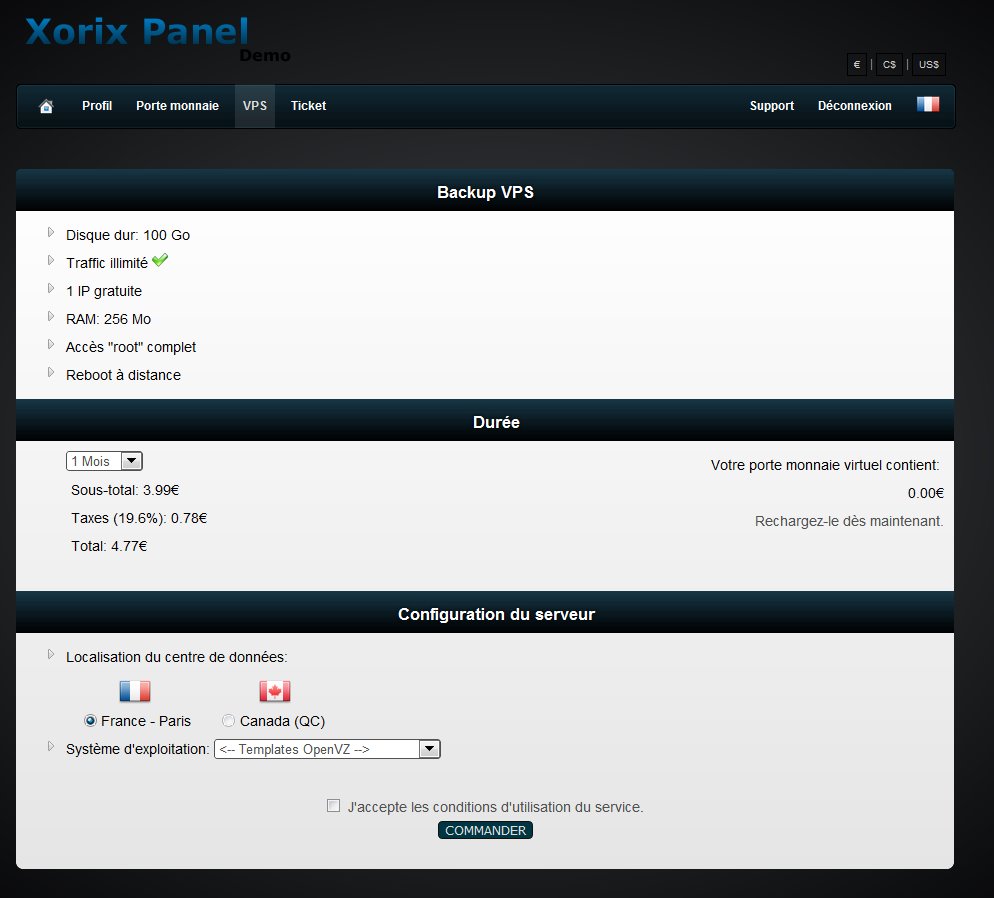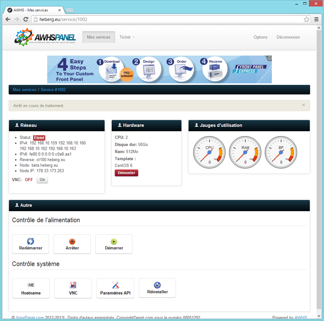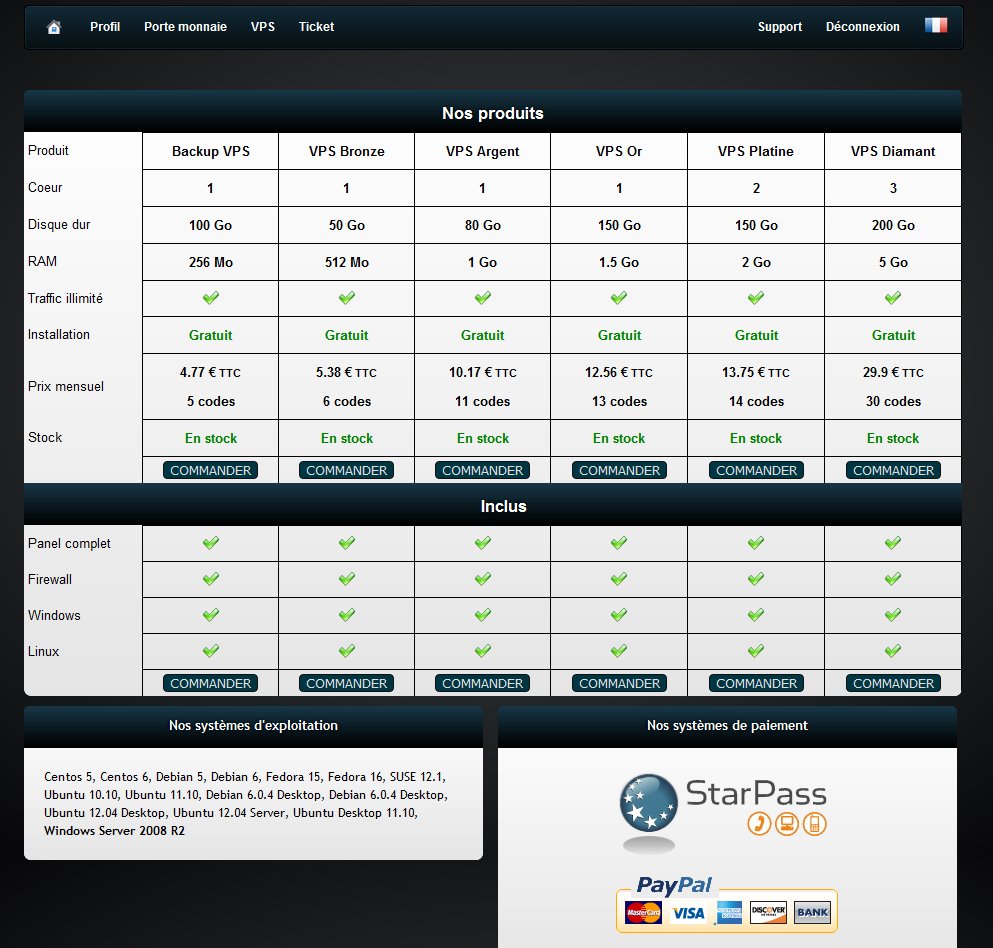 - 2013-2015: Suite au succès du nouveau panel basé sur Symfony2, plusieurs bundles d’hébergements ont été créés (Site, BD, VPS, VPN etJeux) et une boutique a été conçue pour pouvoir commander un produit ou pack de produits.