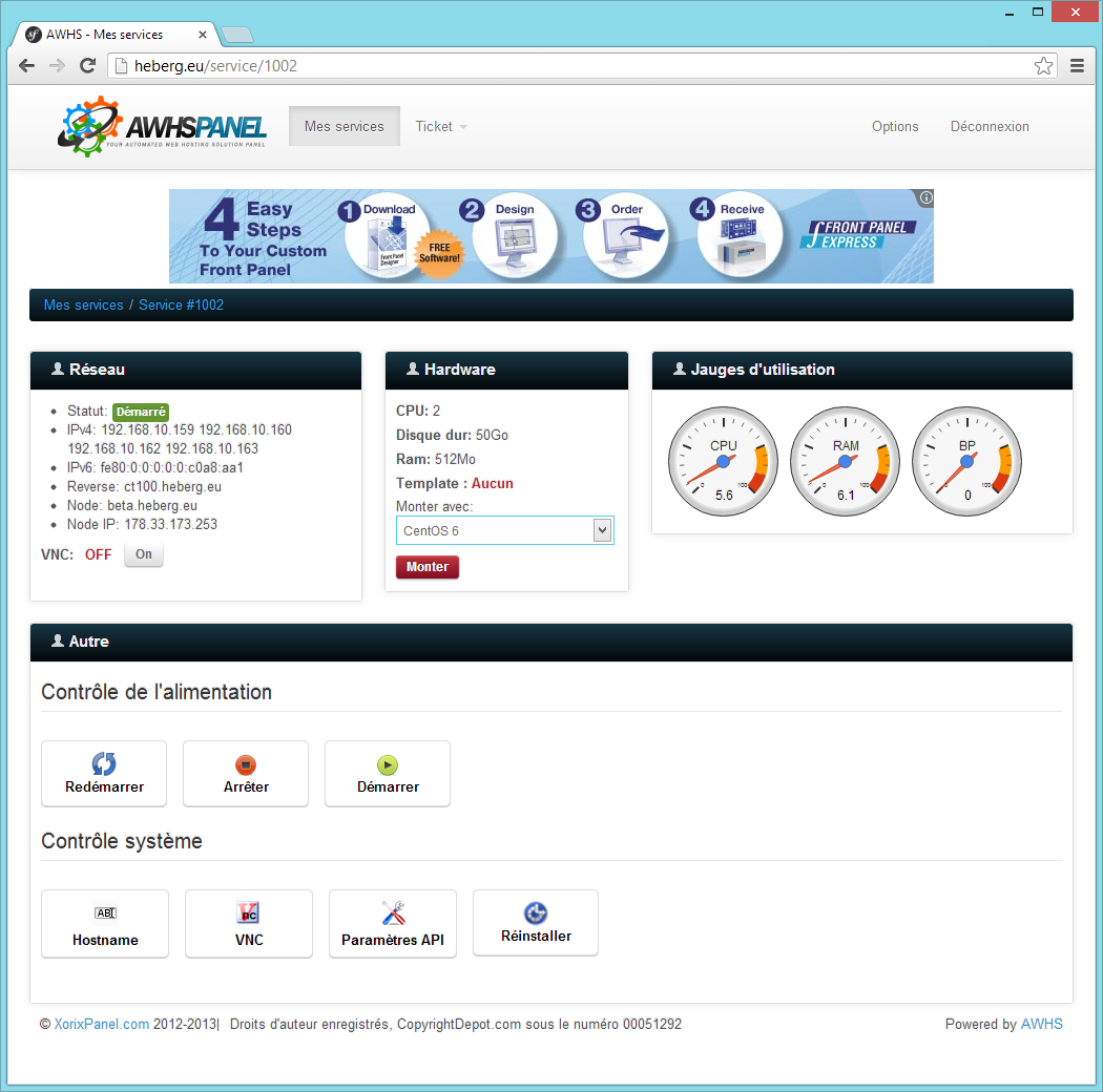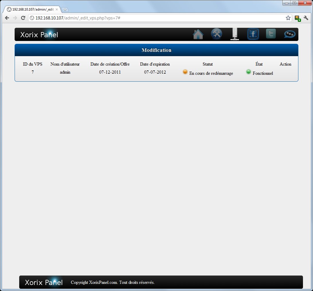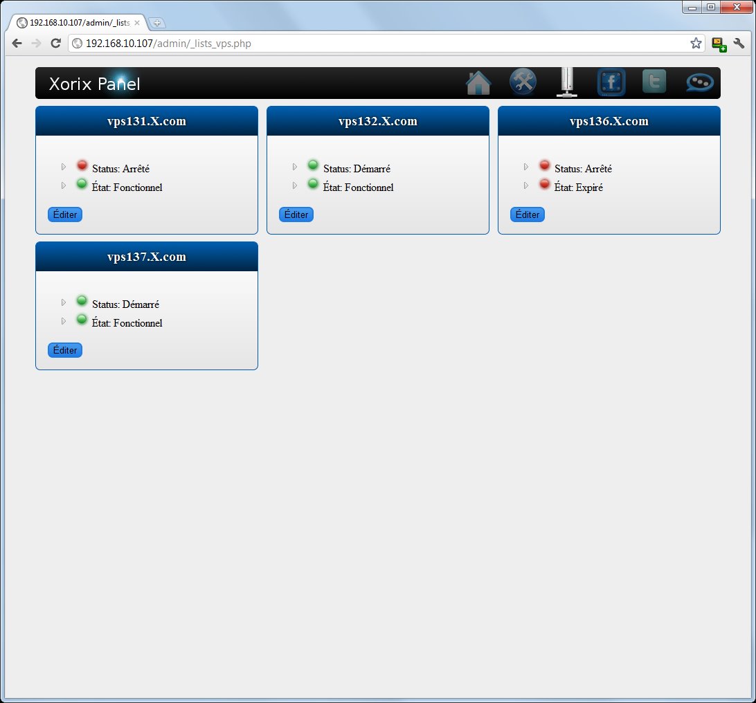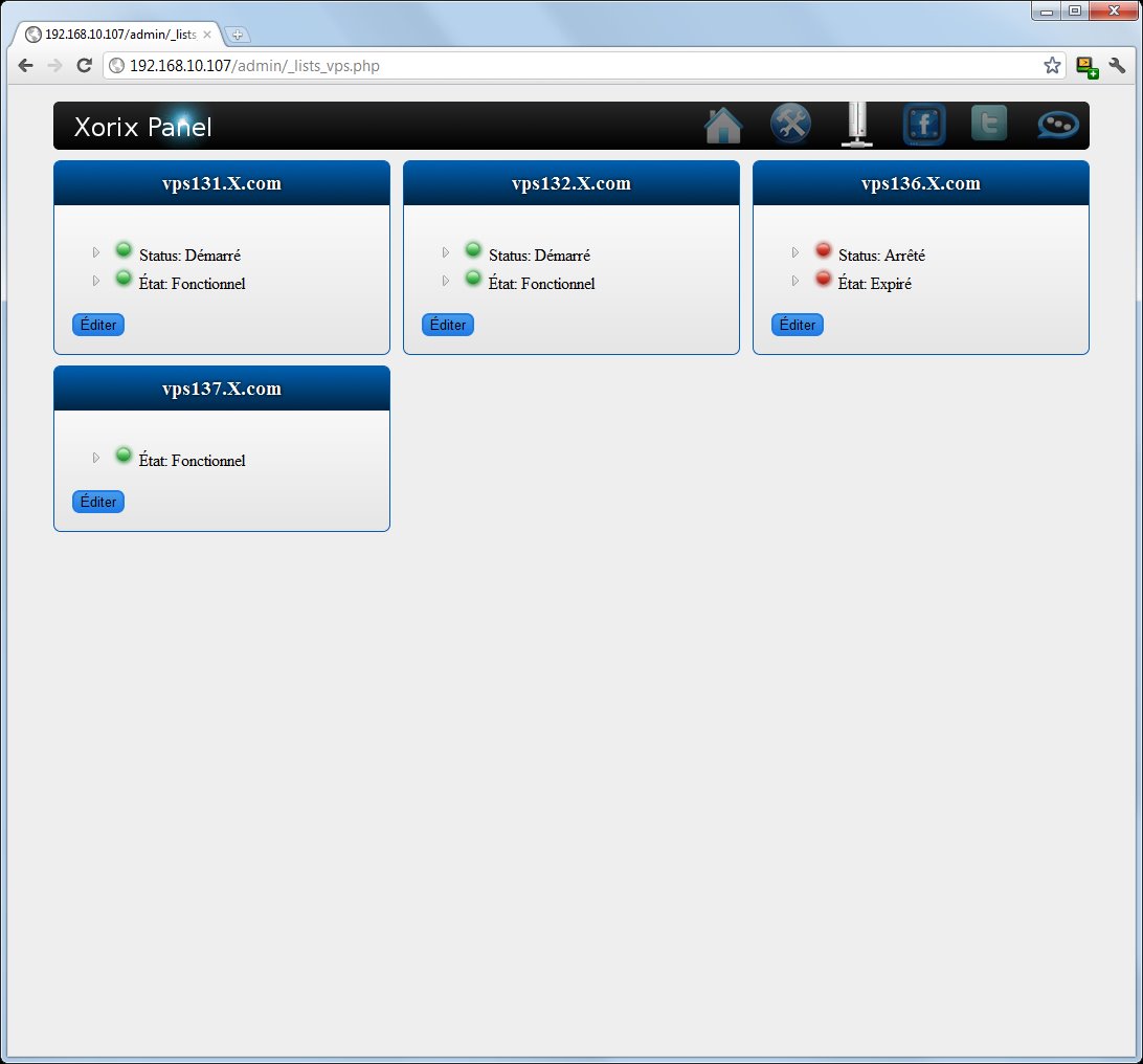 - 2009-2010: XorixPanel est distribué au grand public gratuitement pendant que le développement de AWHSPanel continue à l’interne. Cette ouverture au grand public me permet de pister des éventuels bugs et de fournir un support aux détenteurs du panel en contre-partie d’un VPS pour pouvoir continuer à développer le projet.