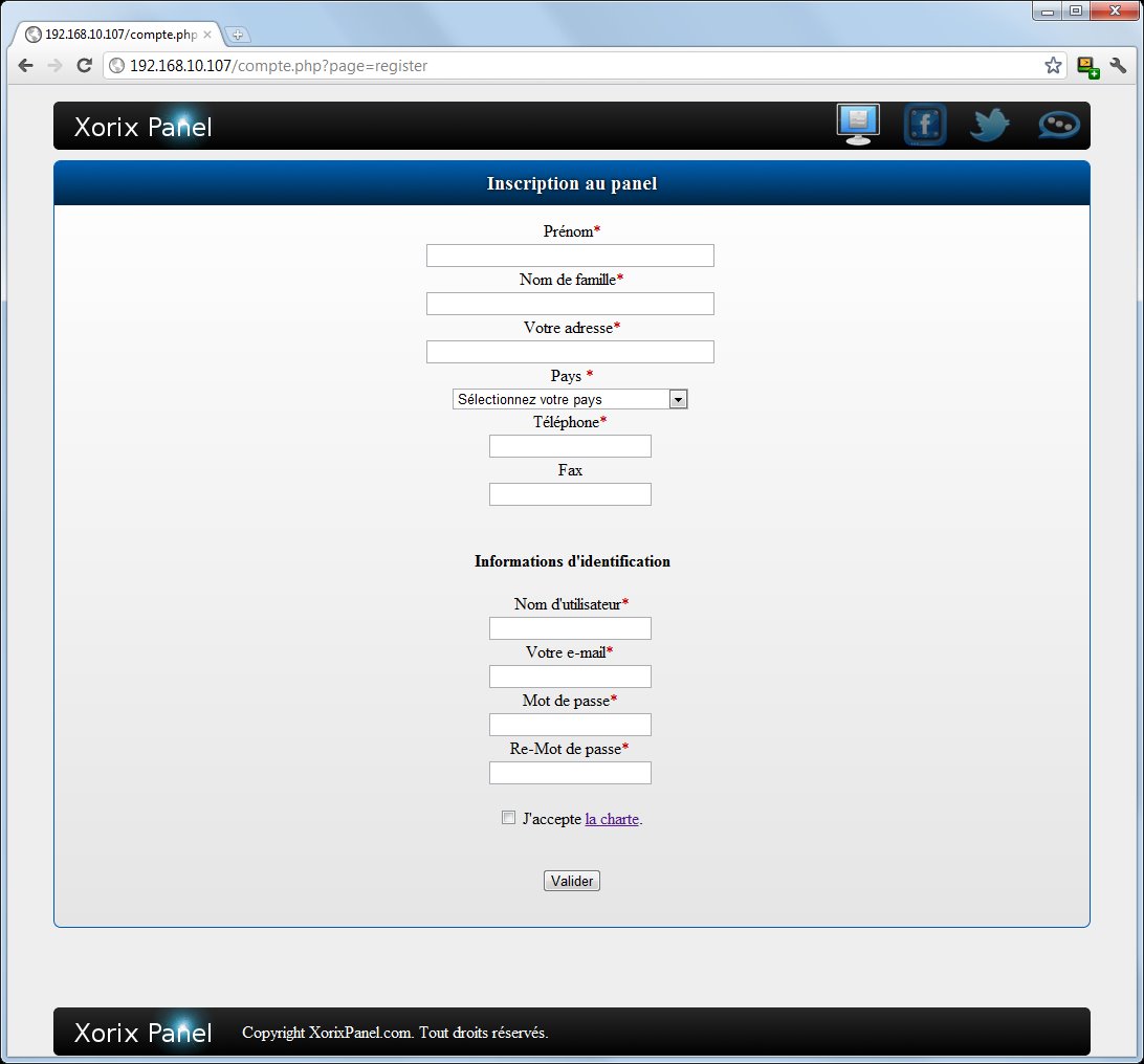La deuxième version de XorixPanel (on voit quand même une amélioration non?)